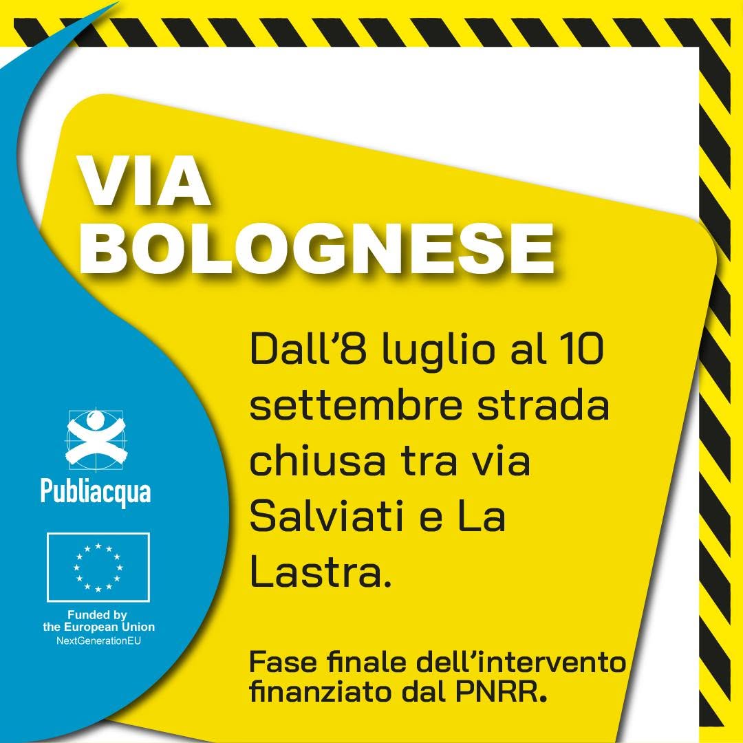 Dalle ore 00.00 dell’8 luglio alle ore 24.00 del 16 Luglio, e dalle 9:00 del 27 luglio alle 24:00 del 10 settembre, il cantiere in via Bolognese si sposterà nel tratto compreso tra via Salviati e il civico 269/A, in località La Lastra